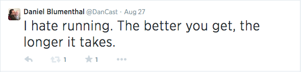 In any case, I feel like I’ve turned a corner. It turns out that almost doubling the frequency of your workout routine is sufficient to get you through a plateau. Why didn’t I think of that before? Oh yeah: